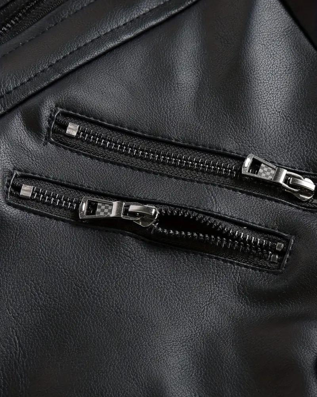 - Integrerad huva: Kombinerar klassiskt skinnjacke-utseende med extra skydd i kyligt väder.